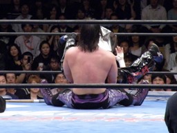 JOEの顔をイスで挟んで柏がトラースキック(右写真)。5分経過。