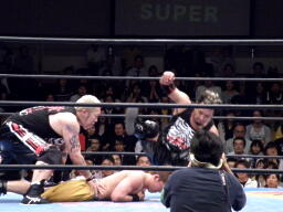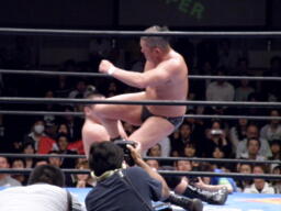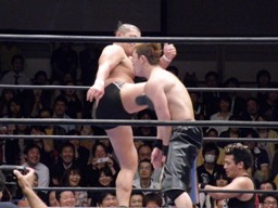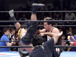 NOSAWAブレーンバスター(右写真)、カウント2。
