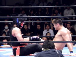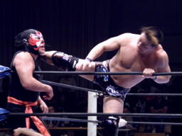 王者・TAKAみちのく(右写真)。サスケとは通算10回目のシングルマッチだそうだ。