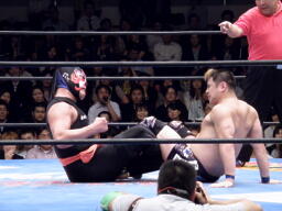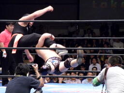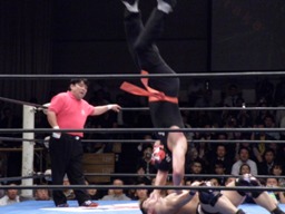 みちのくドライバーU(左写真)、カウント3。