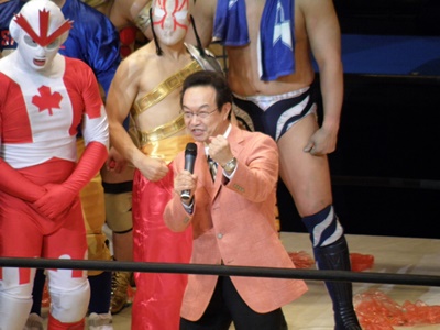 最後にキン肉マンの声を担当した神谷明もリングに(左写真)。