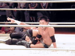 GENTARO卍固め(右写真)、体勢が崩れる。