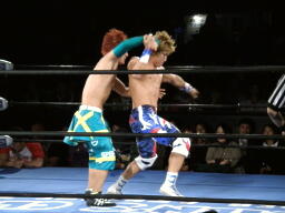 オースギ延髄蹴り、千賀スクールボーイ(左写真)、カウント2。