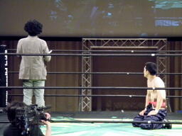しかし入場してきたのは大森隆男(左写真)。