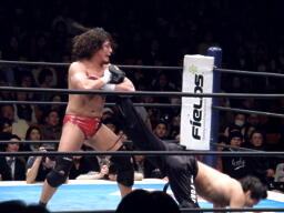 そしてシャイニング延髄蹴り(左写真)、カウント2。