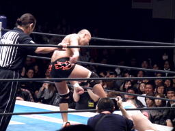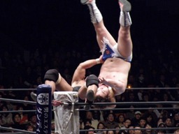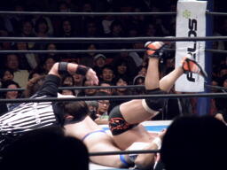邪道逆水平、バックドロップ(右写真)、カウント2。