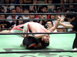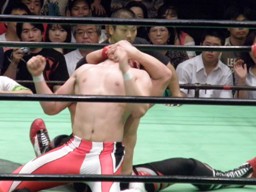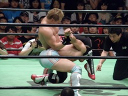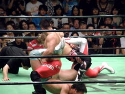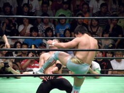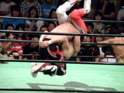 金丸が中嶋に垂直落下式ブレーンバスター、中嶋は金丸にバックドロップのお返し(右写真)。
