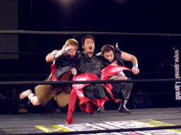 そのまま押さえ込むとタケダイオスと安敦も押さえ込んで(左写真)フォール成立。