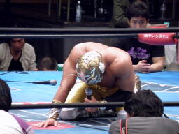 現大阪プロレス王者(今日はノンタイトル)ビリーケン・キッドが先に入場(右写真)。