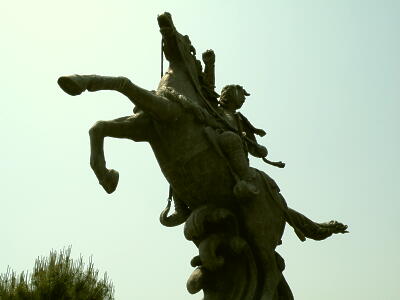 芦辺港ターミナル前の少弐資時像。弘安の役で19歳で戦死したそうだ。