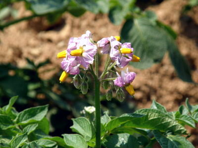 ジャガイモも花咲いてるし。これは5月でいいんだっけ?