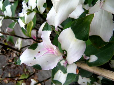 葉っぱの途中までが白く花びらのようになってる変な花。ハツユキツユクサというらしい。