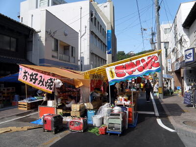郷ノ浦はちょうど祭の最中。時間があればなあ・・・。しかし道の真ん中に露店置かなくても。