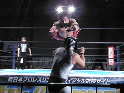 試合はメジャーの地方大会。飯伏はリーグ戦初勝利。写真は偶然うまく撮れたAKIRAのトペ。観戦記。21時15分に試合終了。この時間にバスはないのでタクシーを呼ぶが、出払っている、と。鹿沼駅まで2kmくらいなので歩くことに決めてEZナビウォーク起動。ちょっと怪しいな、と思いつつ指示する方向に進むと街灯はないわ資材置き場はあるわ藪の中の水の溜まった道はあるわ。これ私道じゃないのか?しかし月夜だから見えないことはないし、引き返すのも何なので進むとようやく家が見えた。そのまま駅まで歩き。22時11分の日光線で宇都宮に。宇都宮からは新幹線で大宮、大宮でちょっと速い東北本線に乗換えようかと思ったら人身事故で停まってたので埼京線各駅で新宿に。家に着いたら日付が変わってた。