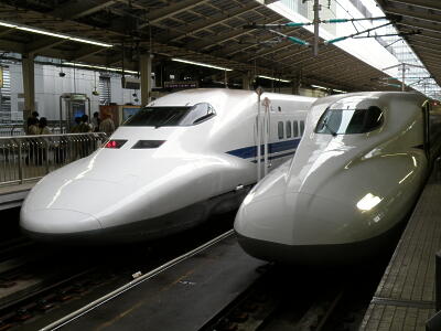 叔父の見舞いに福岡に行くことに。行きの安い飛行機チケットが取れなかったので新幹線で。東京駅7時10分発のN700(右側)。