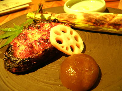 焼魚。魚もうまかったが付け合せのヤングコーン(というにはかなりでかい)が食感はヤングコーンで芯も食えるが味はすでにトウモロコシという変わったもので感動。季節野菜のバーニャカウダもうまかった。