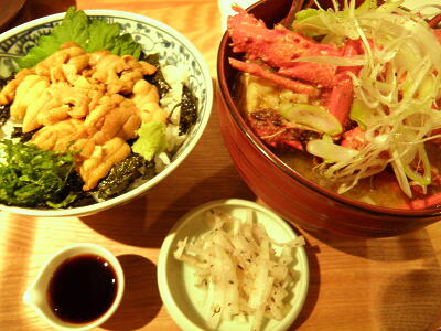 コースの締めのうに丼と味噌汁。味噌汁には先ほどの伊勢海老の頭。味噌がたっぷり汁に流れ出ている。今までも何回か伊勢海老の味噌汁というのは食べたことあるが、みんなカスカスだった。で、満腹していると最後にデザート。不意を突かれてすっかりやられた。これで5,000円だから驚き。