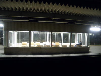 イマココさらに続く。00:11 清水、00:19 葵区(静岡市中心)、00:40 島田、ちょっと寝たらしく01:37 豊橋、01:49 蒲郡、02:03 安城、02:13 名古屋、02:31 稲沢、02:42 岐阜、03:00 垂井、03:20 米原。その時の米原駅。駅にいる人は終電逃したんだろうが、起きてる人は何してるんだろう?この辺で佐和山城盗ったのを最後に寝る。