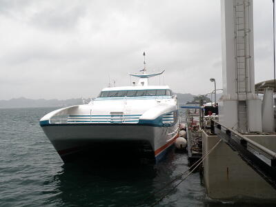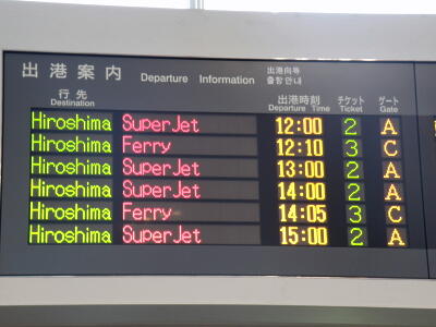 ここから12時発のスーパージェットという名の高速船で広島県の呉港に向かう。天気は雨。