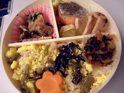 朝食は東京駅で買った長野の駅弁「信州野沢菜おごっそ弁当」。まあうまい。