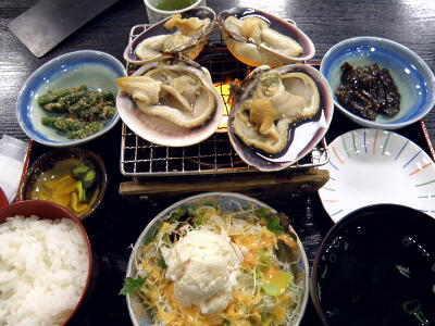 名古屋で快速みえに乗り換えて鳥羽まで。駅弁を買おうと思ったら売ってないので駅の食堂で大あさり御膳。珍しいもの食えた。