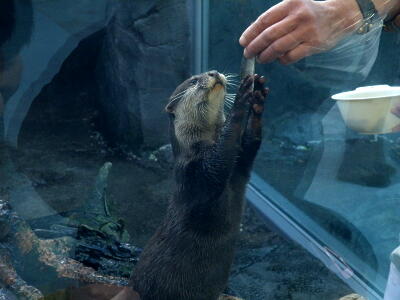 エサをもらうカワウソ。