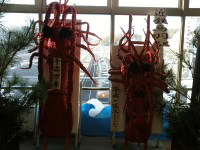 鳥羽城には行かず、中之郷駅から帰ろうとすると特急券がここでは売れないので鳥羽駅まで歩けと言われる。なんだそれ>近鉄。鳥羽駅のシンボル?の伊勢海老親子。