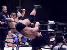 鶴見(5分38秒 オーバーザトップロープ)テイオー