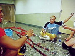 順調に進んでいるらしいドミノ並べ(右写真)。