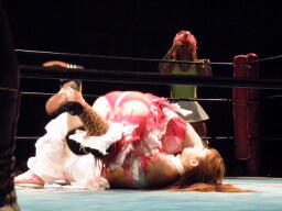 真琴チェリーに首投げからボディシザーズ(右写真)、引っくり返してフォール、カウント2。