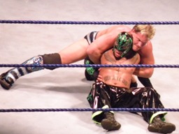 ジェリコはさらにキック。ストンピング連打、首投げからWARスペシャルに。ミステリオロープ。