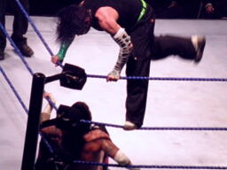 パンクコーナーに上る、ジェフ起き上がってデッドリードライヴ。