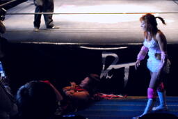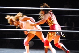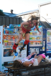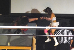 チェリーが宮崎を落としてダイビングボディアタック(右写真)。
