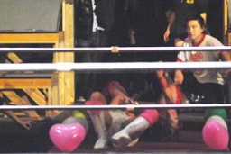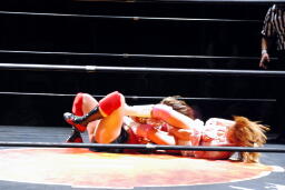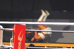 チェリーは腕にストンピング(右写真)。宮崎場外エスケープ。