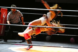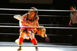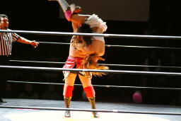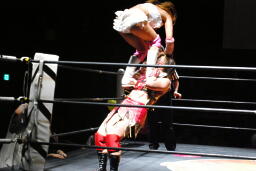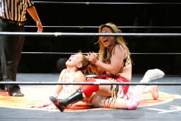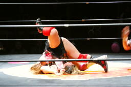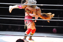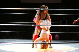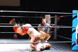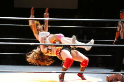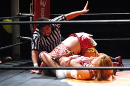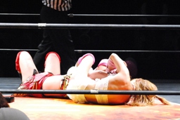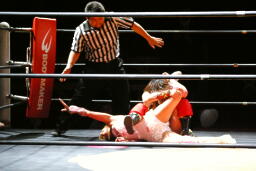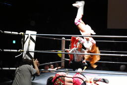 チェリー春夜恋、しかしこれは体勢崩れて押さえ込めず。チェリー再度のファンタジーイリュージョン(右写真)、カウント2。
