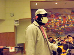 冨宅が不審者マンの帽子をかぶる(左写真)。