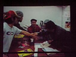 奇才アントーニオ“ルノワール”本多監督がDDT事務所にイタリアン・フォーホースメンとベルトハンター×ハンターを呼んで映画の企画会議。奇才はおとぎ話がやりたいらしい(右写真)。