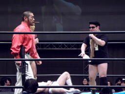 奇才がリングに。「こんにちは、ジャン・リュック・宗一郎です。」(左写真)名前変わってるし。