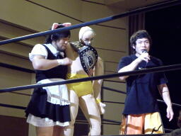 高梨マイクを持つと「見て分かる通り、戦力差が絶大だ。第一こちらは人数が少ない。4vs5だ。そこで我々はレジェンドレスラーを連れてきた!レジェンドレスラー、出て来い!」
