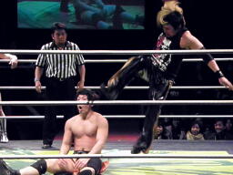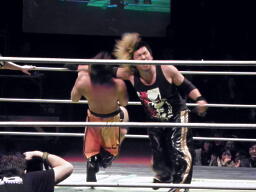 ディーノパイプカッター(右写真)、高梨イナヅマ、カウント2。