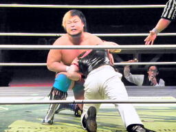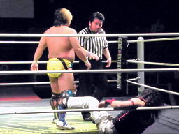 この試合を組んだ意味は何?ヤマダマン・ポンドをDDTデビューさせるための試合で谷口はジョバーです、ってんならこれでもいいだろう。若手の修業の場じゃなかったの?試合運びよりギミックが大事ですってレスラーは「月刊若手通信」にいらないのではないのだろうか。若ければ内容はどういうのでもいいのかな?谷口だって元よりうまい方とは決して言えないけど、ポンドに合わせるので必死で全然見るとこなし。こういう試合組むと興行のコンセプトがぶれる。