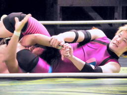 ワキ固めに移行(左写真)、石井回転、矢野エビ固め、カウント2。