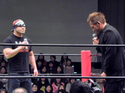 外道「オイ、本当の責任者!聞いてるか!飯伏を俺に差し出せ!あの小僧ジュニアタッグの挑戦者に名乗りを上げやがった。あのベルトは、邪道外道の許可がいる!もう一つ!俺の大事な相棒を欠場に追い込みやがった!俺が小僧を病院送りにしてやらぁ!答え待ってるぞ!」