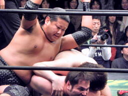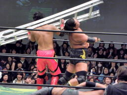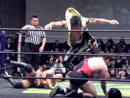 6番目入場のディーノがKUDOを捕えピストン運動(左写真)。