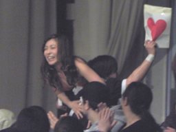 佐藤光留が引いたのは「安藤あいかとの1日デート権」。佐藤はステージ席に一目散、怯える安藤を担ぎ上げるとそのまま退場(右写真)。6分11秒。