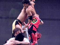 5番目KUDO。3人にストンピング(左写真)。