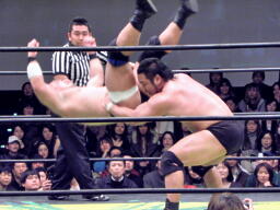 関本ラリアット(右写真)、これはカウント2。