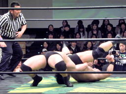 関本バック取ると後方回転エビ固めからのロールアップジャーマン(右写真)、カウント2。
