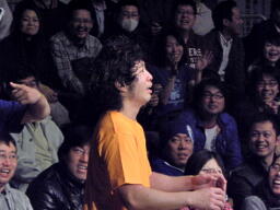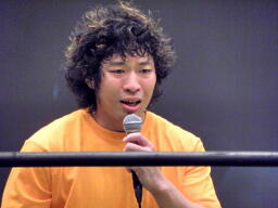 そこに「いつでもどこでも挑戦権」を手にした大家が現れ(右写真)、「関本大介、俺が恐いか?俺が、この、いつでもどこでも挑戦権を得たことにより、お前はこれから眠れない夜を過ごすことになるだろう。確かに石川は、ユニオンは負けた。しかし人生で一度も負けたことのないこの」