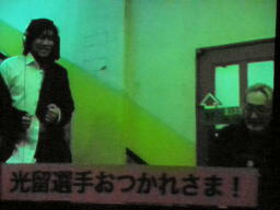 安藤をお姫様だっこ(左写真)。終わってみればロビンさん祭り。終了は5時20分。